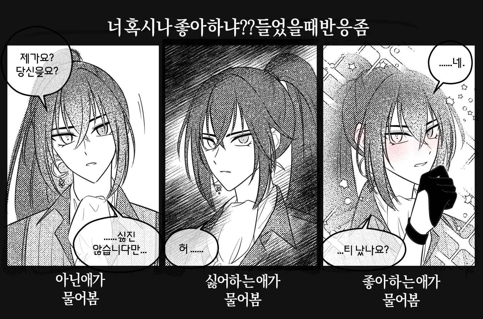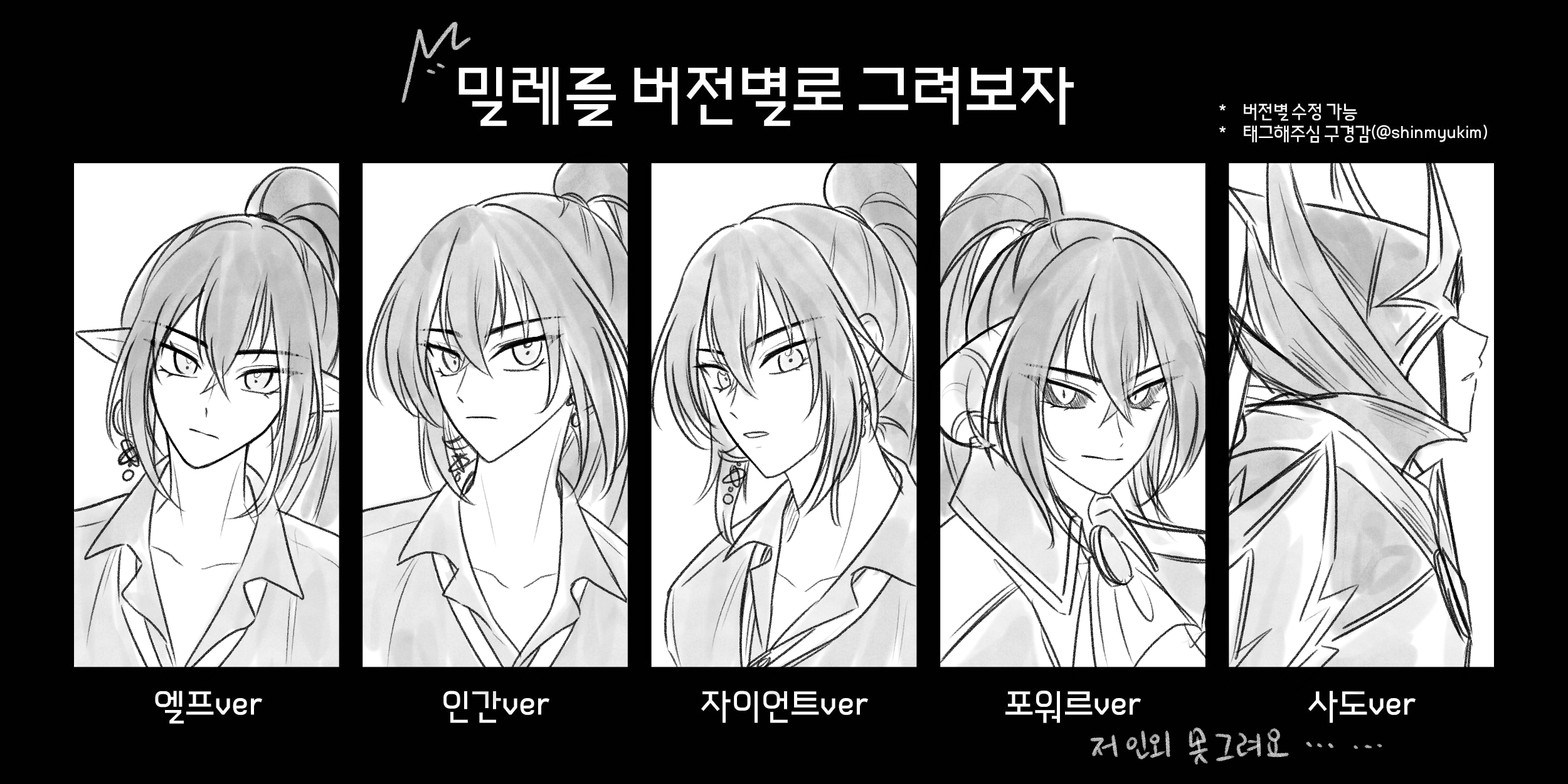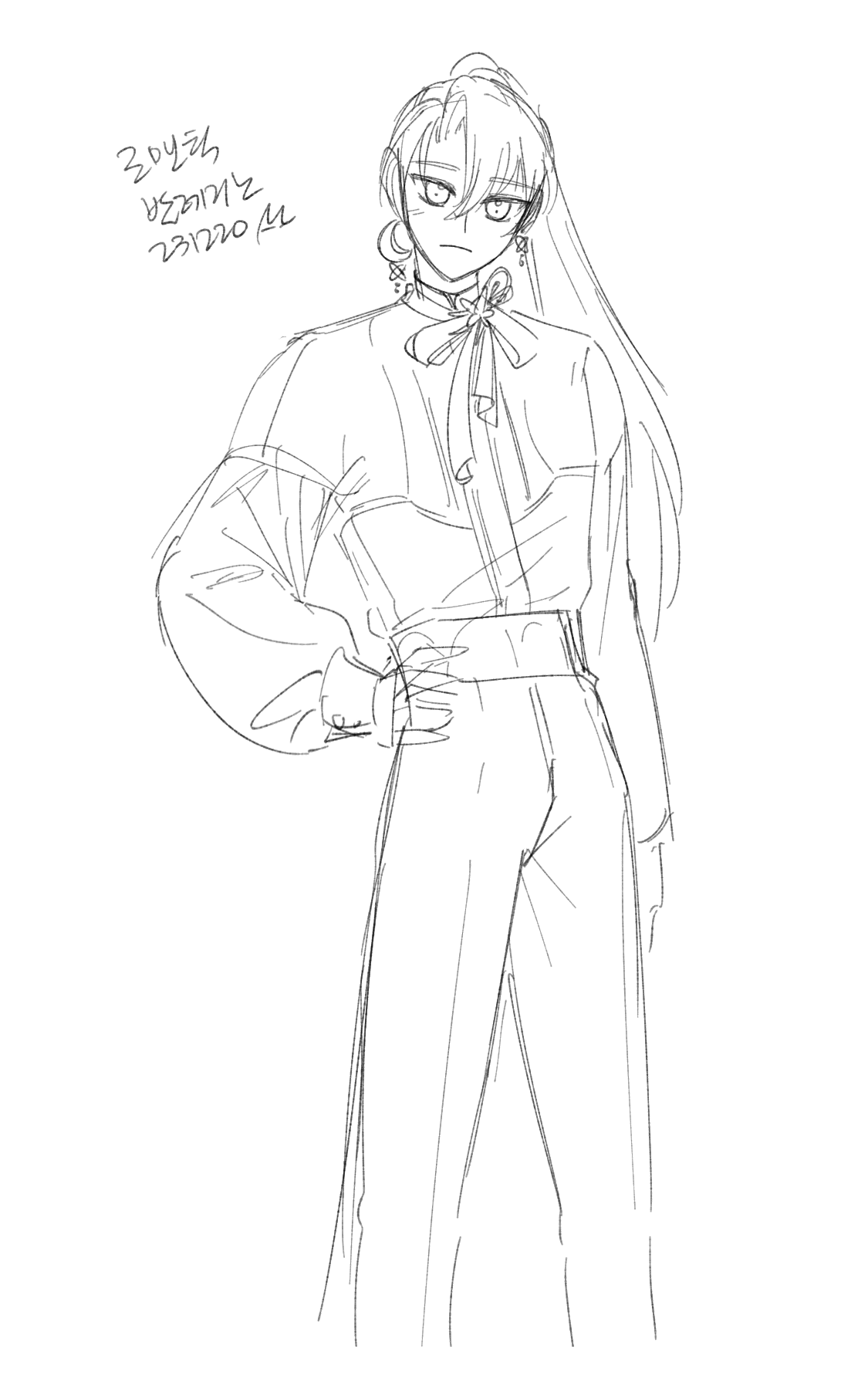 초반엔 살짝 웃는 상이었는데, 성격이 잡혀가다보니 지금의 무표정한 얼굴이 되었어요.