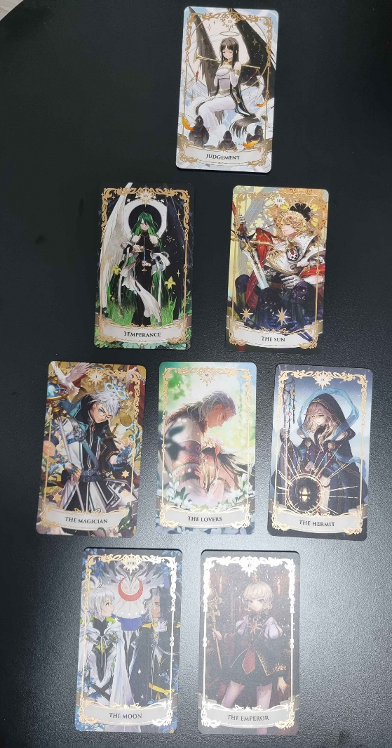 초반부터 너무너무 달구요 베타인지 로시네인지 모르겠는데 굉장히 적극적으로 군다고 하네요(근데 둘 성격 생각하면 200% 베타일 것 같네요) 마법사 머리 위해 무한대 표식이 있는데 이게 매력을 표현하고 싶은 욕구가 크다는 뜻이래 귀엽다 이거 다음카드까지 생각하면 로시네가 그걸보고 부담스러워하거나 거부감이 든다기보단 그것도 좋아하나봐(ㅋㅋㅋㅋㅋㅋㅋㅋㅋ) 이 분위기가 중반으로 갈수록 좋은 뜻으로 무거워지고 달아오르나봐요 꾸금이었다면 그...런 분위기도 충분히 나올만한가본데? 둘 다 서로를 반려로 두기를 진지하게 생각하고 있대요. 마지막 카드에서 약간 고민했는데 앞부분이 너무 달아서(ㅎㅎ) 은둔자 카드가 스스로를 돌아보는? 의미가 강한데 등불과 지팡이가 자기 확신을 뜻하거든요. 서로의 옆자리에 있기로 다짐한 것 같습니다. 그런데 이카드가 세상과 거리를 두는 의미도 있어서 (세상 = 사람들의 시선 = 주변분위기) 산지기인 로시네를 생각하면 진짜 잘 맞을지도 (팬픽맞아?2)
