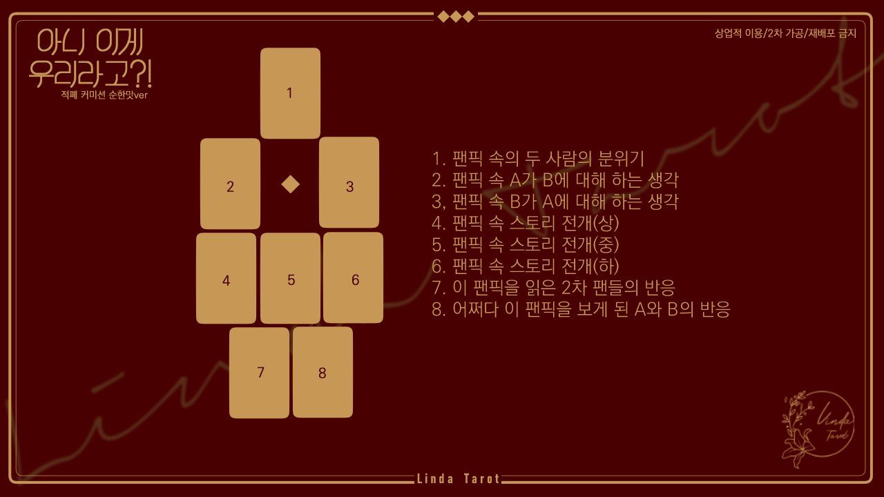 팬픽을 즐기기보단 왜 이런 팬픽이 나왔는지 둘이 고민하나본데? 황제카드가 좀...상황통제를 뜻하는 게 있어서요. 뭔가 둘이 계획하고 있는게 있었는데 그 와중에 저 팬픽이 나도는거라면 어디서 티가 난거지!? 하고 둘이 머리 맞대고 고민하나봐요(ㅋㅋㅋㅋㅋ) 카드에서는 괜히 휘둘리지말고 원래하려던거 하라고 합니다.